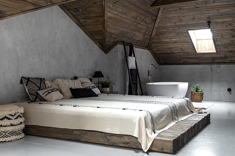 - Потолки: краска Dulux Classic Colour, Dulux для стен и потолков, деревянная обрезная доска, лазурь V33