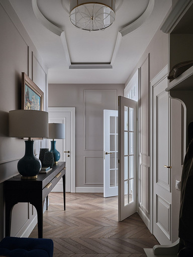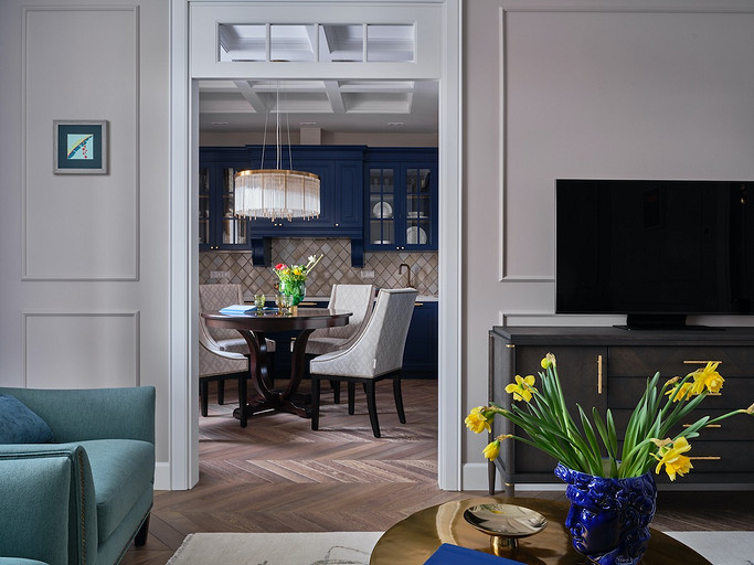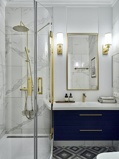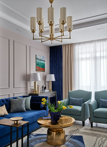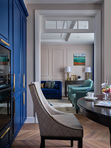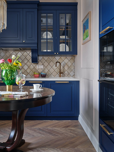 Стиль, который предполагает массивную мебель и объемный декор, сумели адаптировать под небольшую площадь этой двухкомнатной квартиры. На светлом фоне стен выделяются синие акценты — их активно использовали в мебели. Читать далее...