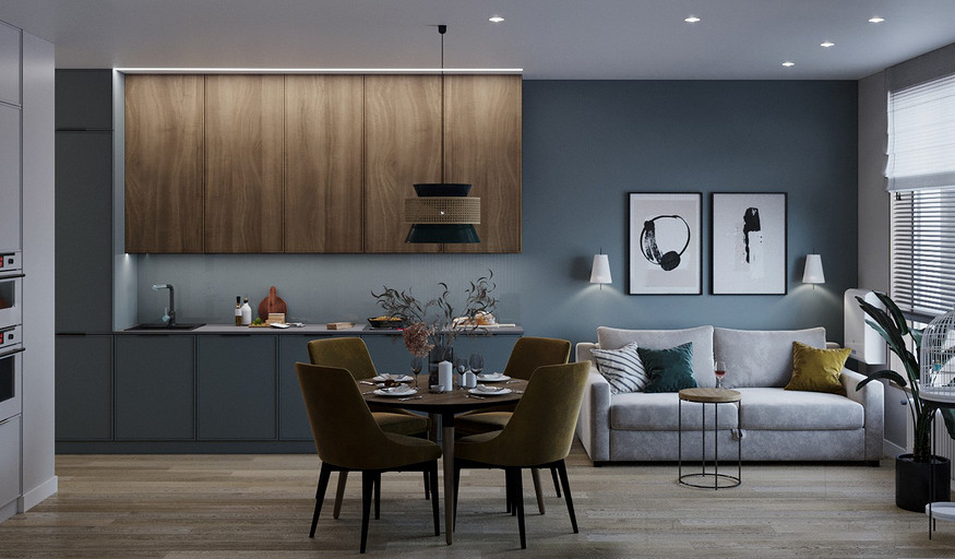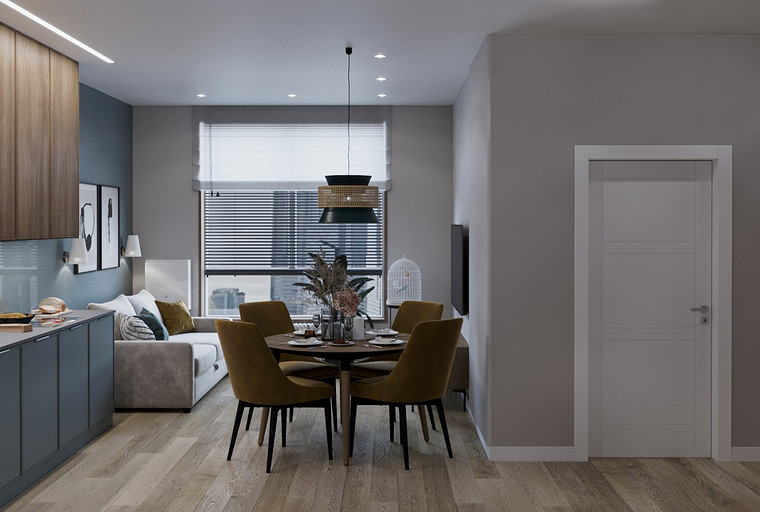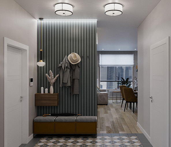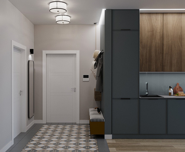 Трехкомнатная квартира с прачечной комнатой и смелыми цветовыми сочетанями