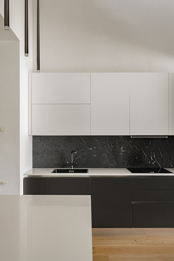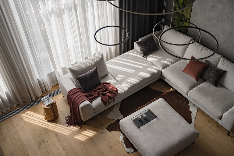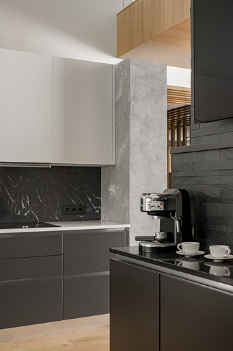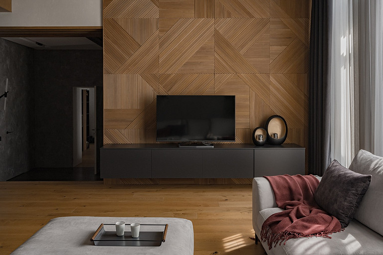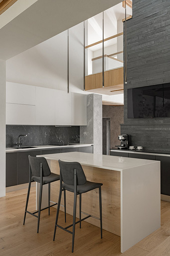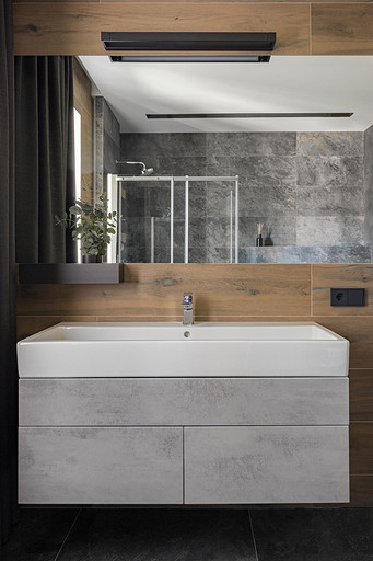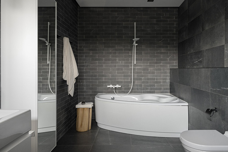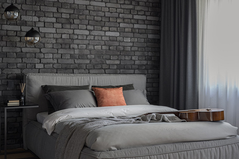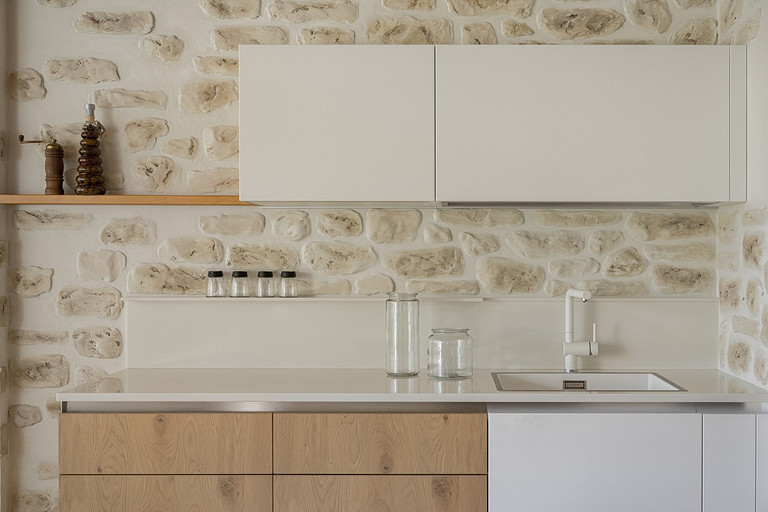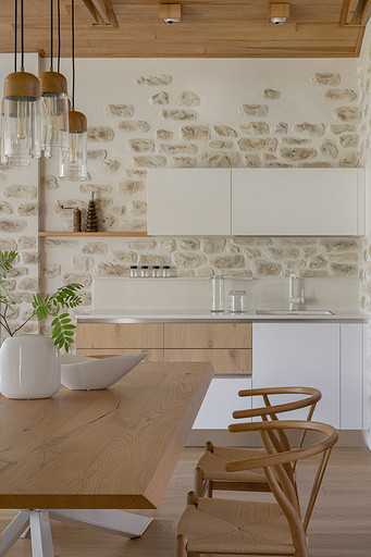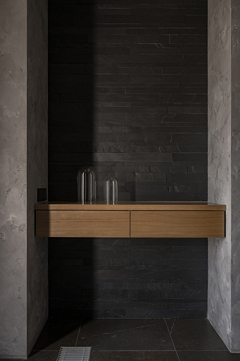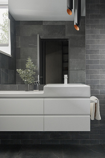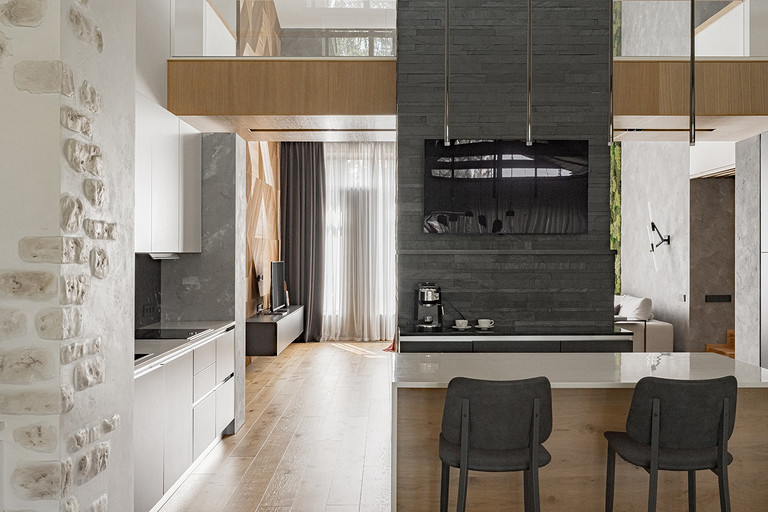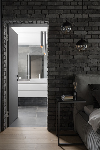 - Стены: краска Derufa, керамогранит Venis, Porcelanosa, каменный шпон L’antic Colonial, декоративный кирпич Baueco