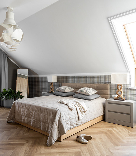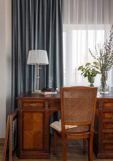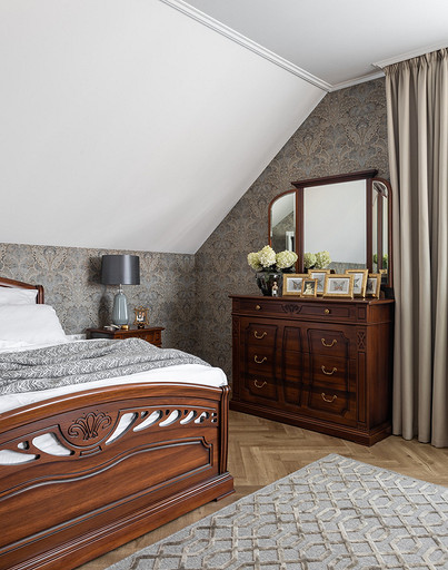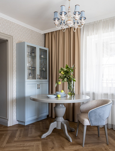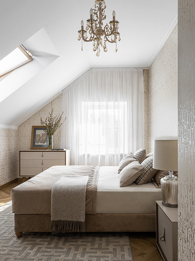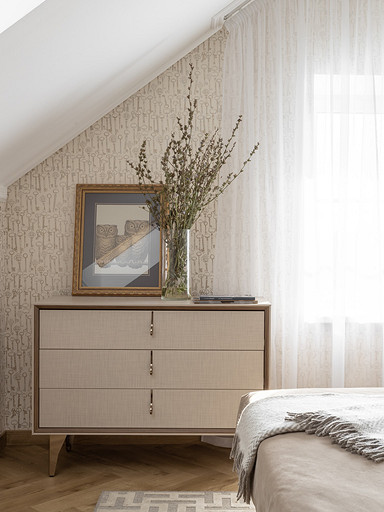 - Мебель: ИКЕА, Casa Nobile, стол и стулья, кресла — фабрика «Майя», прикроватные тумбы и комод Enza Home