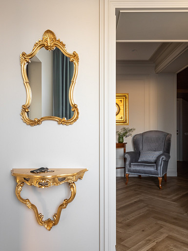 - Стены: краска Lanors, лепной декор Orac Decor и Rodecor, обои York, Wallquest, Midbec, Loymina, AltaGamma Kilt, керамогранит и плитка Kerama Marazzi