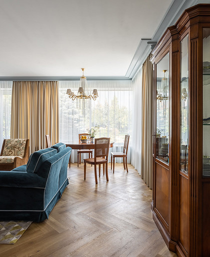 - Полы: стол и стулья, кресла — Fargo, плинтус Ultrawood, керамогранит и плитка Kerama Marazzi