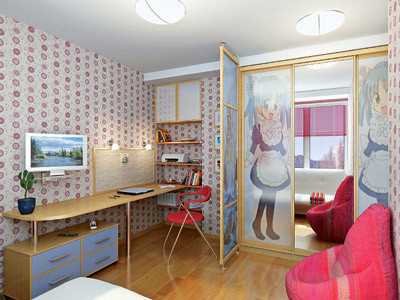 с изображением одной из героинь детских японских мультфильмов. Ав комнате сына по такому же принципу сделан рисунок летящей ракеты