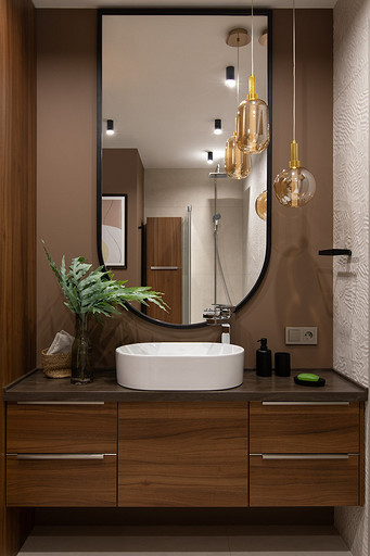 - Сантехника: ванна, смеситель для раковины, душевая стойка, стеклянная перегородка Jacob Delafon, раковина и унитаз Villeroy & Boch