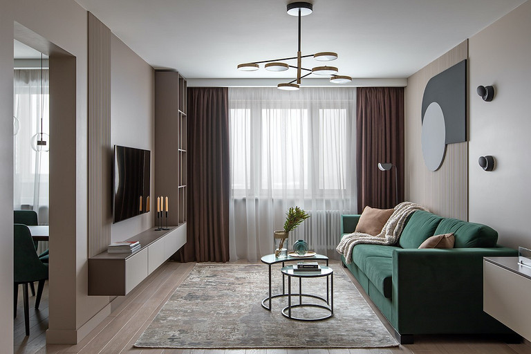 Уютная трешка в бежевых тонах для семьи с ребенком