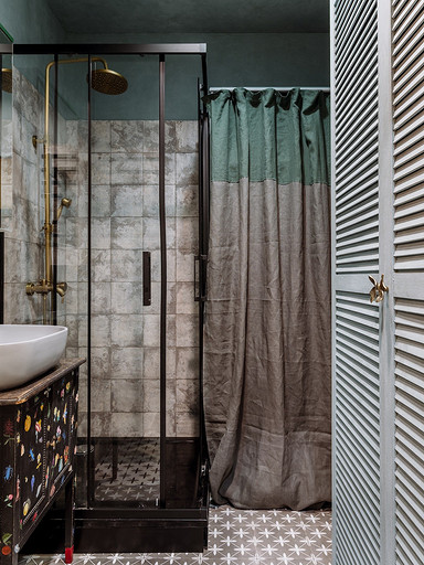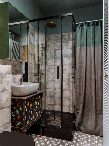 - Стены: краска Little Greene, плитка в ванной комнате Equipe