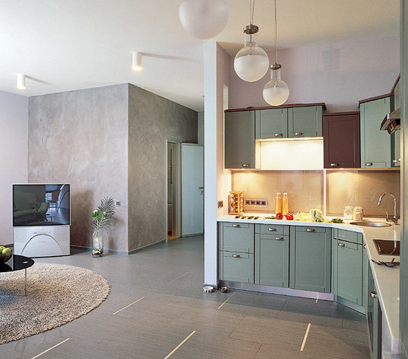 Перепланировка киевской трехкомнатной квартиры общей площадью 106,1 м2: скандинавский минимализм в серо-сиренево-зеленоватой цветовой гамме. Читать далее...