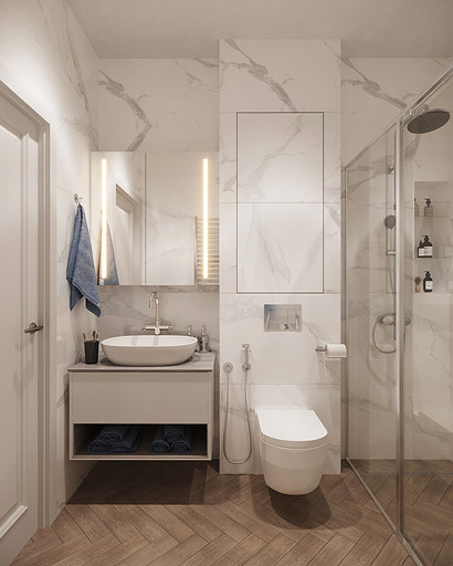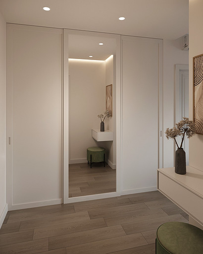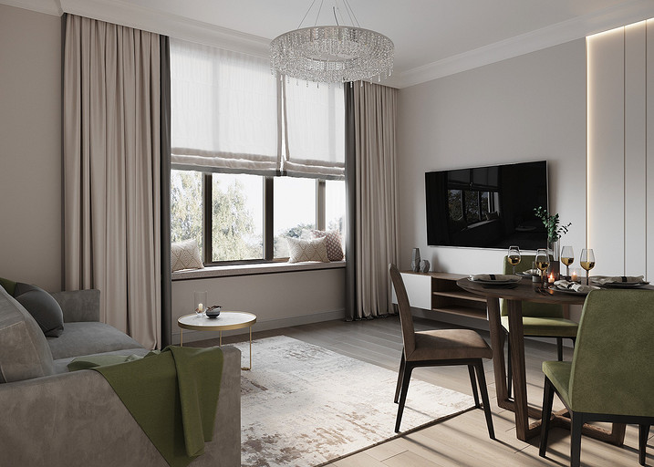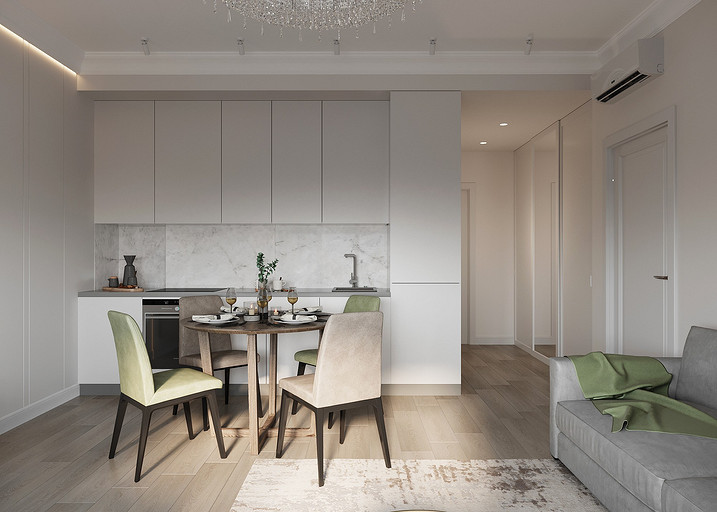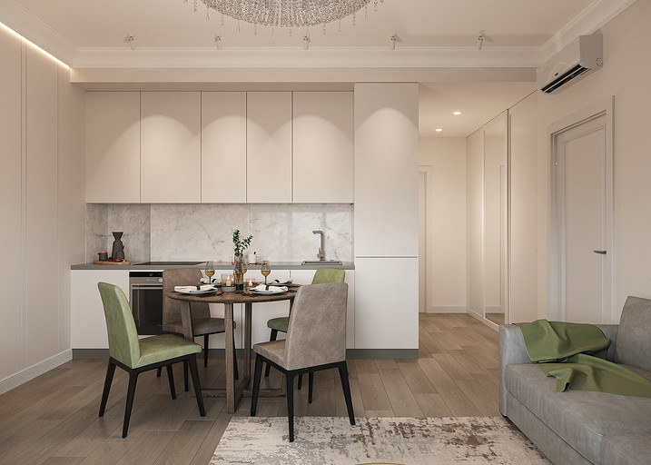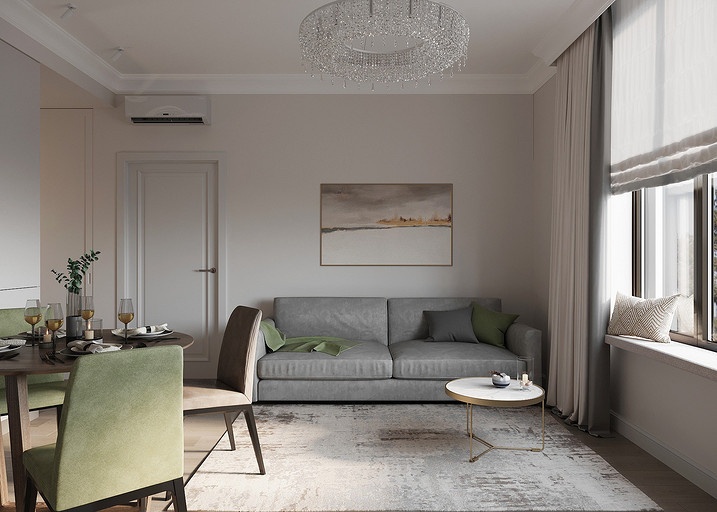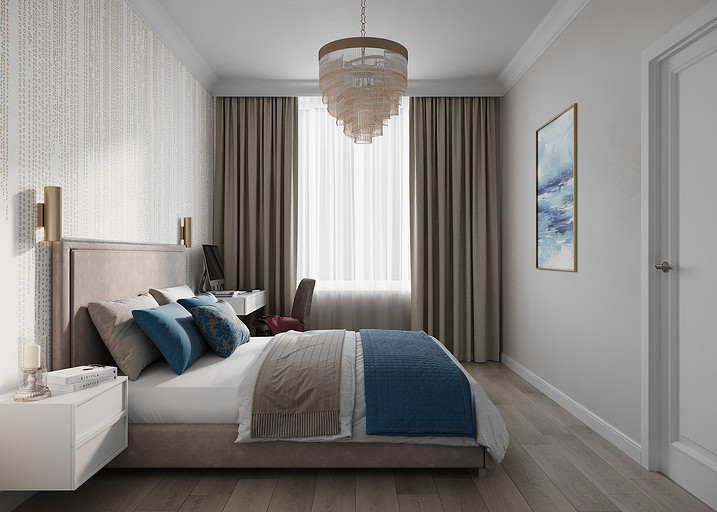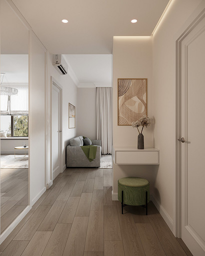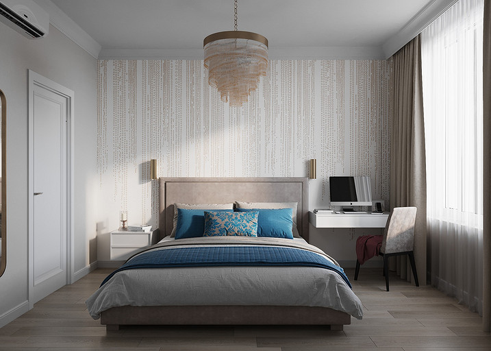 Это квартира предназначена для сдачи в долгосрочную аренду. Поэтому заказчики просили выполнить проект в светлых бежевых тонах , которые нравятся большинству людей. Но при этом были определенные ограничения по Фэншуй.,