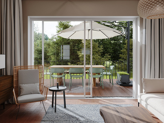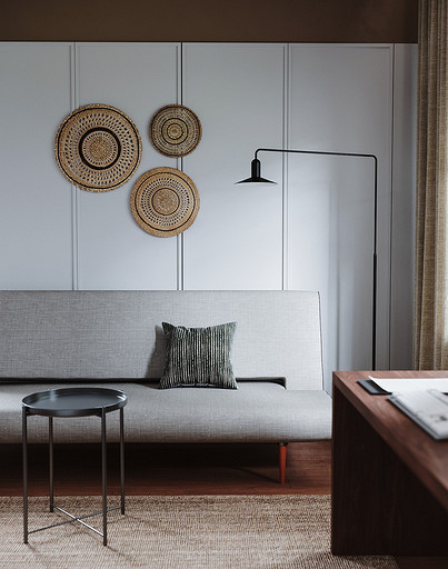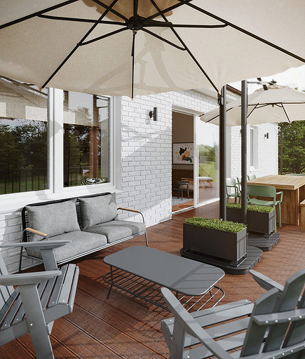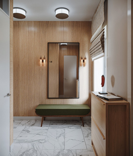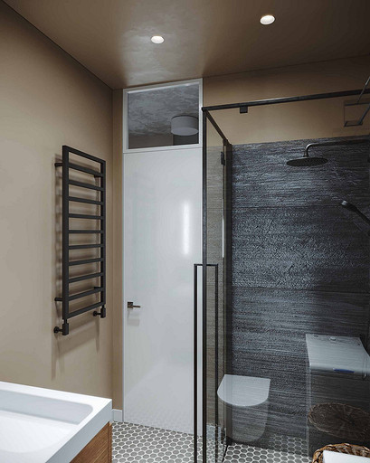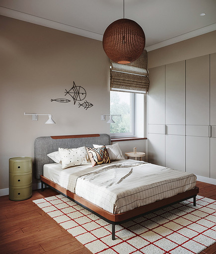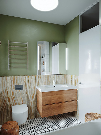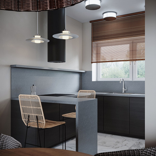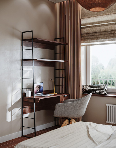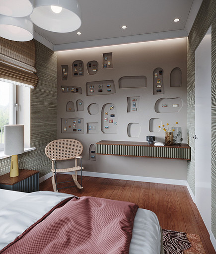 Дизайн интерьера дома на юге Москвы площадью около 102 кв м и с открытой террасой для внесезонного отдыха. Проект в процессе реализации. Интерьер создавался для возрастной супружеской пары, дети уже взрослые и живут отдельно в разных странах. Сами супруги на момент разработки проекта проживали за границей и весь процесс проектирования и согласования проходил удаленно, за исключением пары очных встреч во время их визита в Москву. Дизайн проект разрабатывался на стадии строительства самого дома, поэтому удалось внести необходимые изменения в первоначальное планировочное решение и создать комфортное просторное место для постоянного проживания и визита гостей. Одноэтажный дом насчитывает две спальни: хозяйскую и для гостей; общую комнату, совмещающую роль кухни, столовой и гостиной c печью-камином, а так же отдельный кабинет и два санузла: гостевой, сочетающий в себе так же функцию постирочной и хозяйский при мастер спальне с окном во двор. Продуманные системы хранения позволяют вместить все необходимое при этом визуально не засоряя пространство и не отвлекая внимание от самого интерьера. Объект расположен на территории уже сформированного СНТ и на участке уже расположен один старый дом клиентов, который они планируют реконструировать и оставить для гостей. В отделке преобладает покраска и натуральные цвета и материалы. Общий запрос был на северо европейский, скандинавский практичный дизайн. Крашенные в светлые оттенки стены создают расслабляющую атмосферу, характерную для загородной жизни. Это помогает создать настроение отдыха в любую погоду и время года. Интерьер пронизан воздухом, а где это требуется создает уют. При этом общая колористика проекта и сочетание фактур оставляет за собой ощущения нордического характера интерьера.
