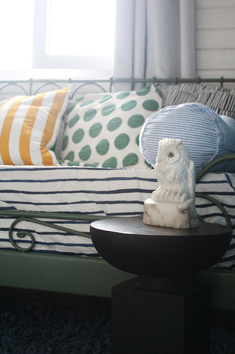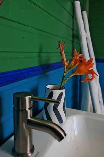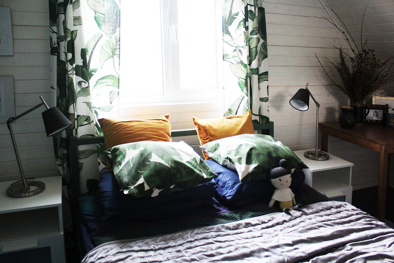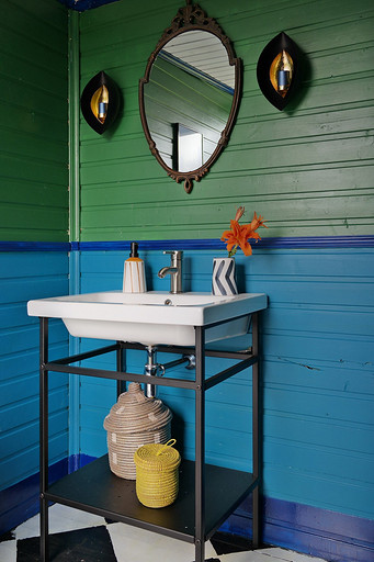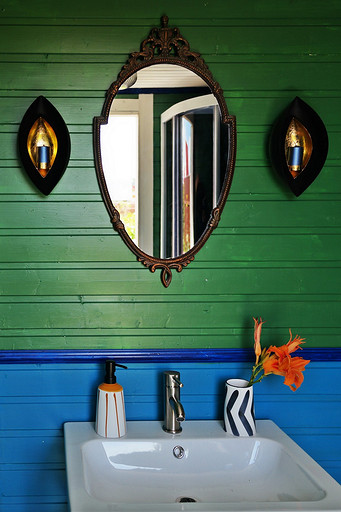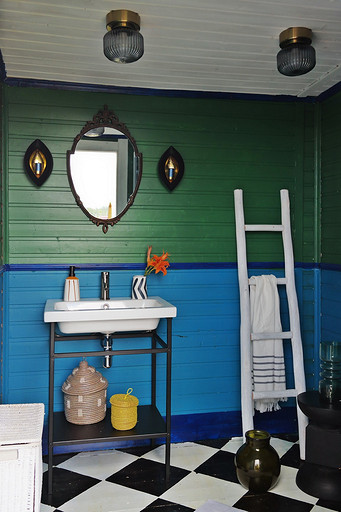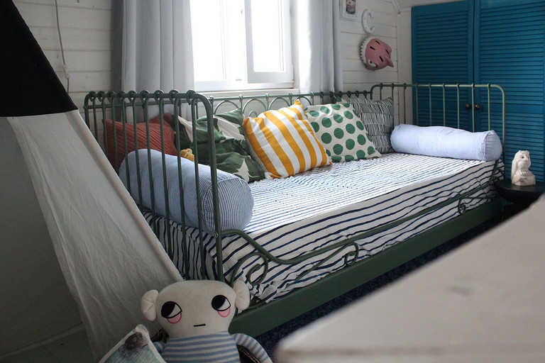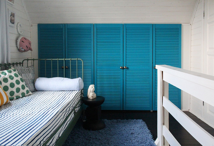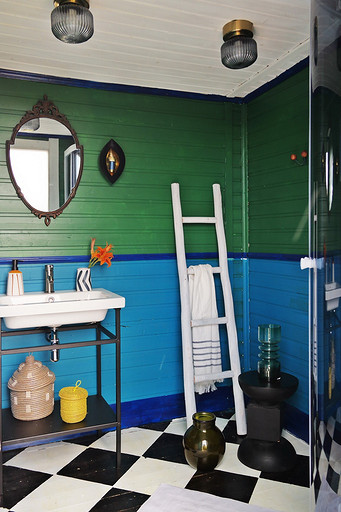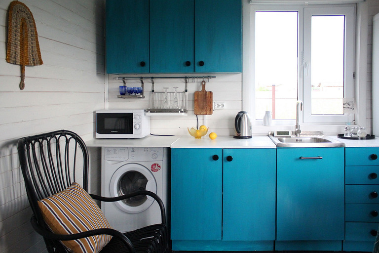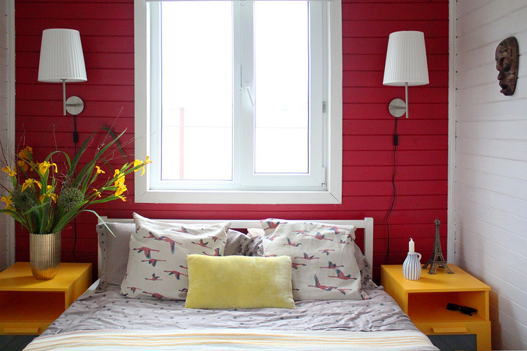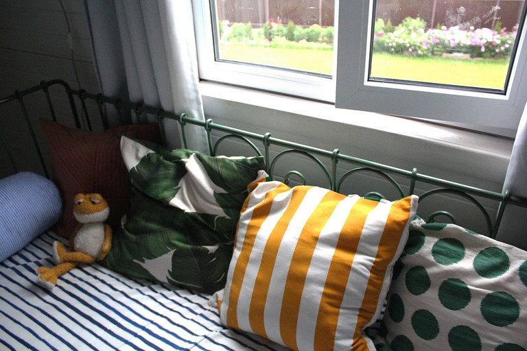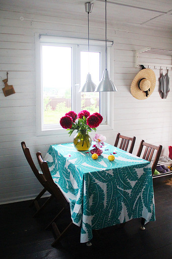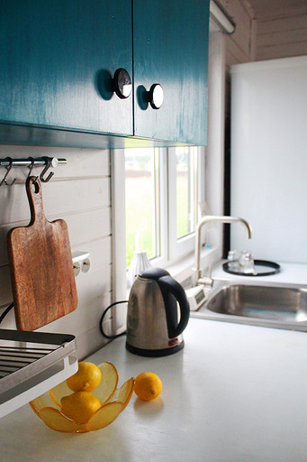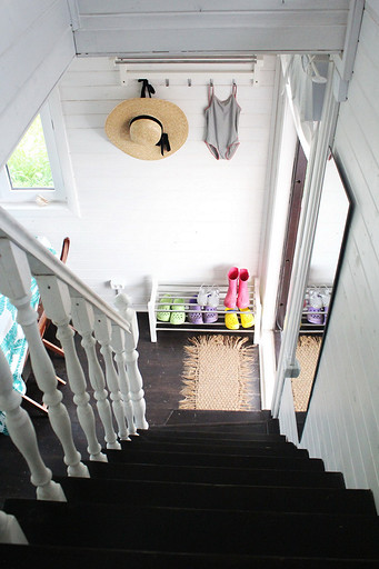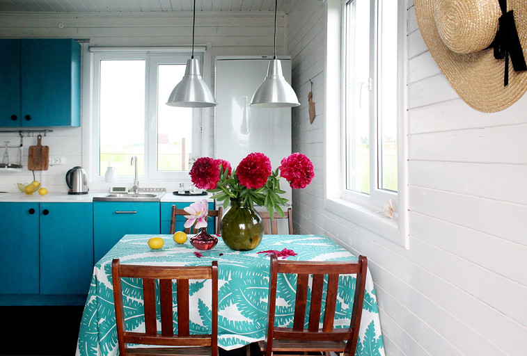 Дизайн интерьера летнего дома в Подмосковье площадью около 50 кв м. Проект реализован. Интерьер создавался для активной женщины, которая хотела иметь летнюю резиденцию за пределами Москвы с настроением средиземноморской виллы и французской деревни. Дизайн проект разрабатывался на стадии проектирования самого дома, поэтому удалось при небольшой общей площади рационально использовать каждый сантиметр. Двухэтажный дом насчитывает две спальни: хозяйскую и для гостей; общую комнату, совмещающую роль кухни, столовой и гостиной, а так же компактную детскую на втором этаже, сочетающую в себе и игровую, и спальную функцию для внучки хозяйки. Продуманные системы хранения позволяют вместить все необходимое при этом визуально не засоряя пространство и не отвлекая внимание от самого интерьера.Объект расположен на территории современного коттеджного поселка и поступил в работу на стадии покупки участка. В задачу архитектора входило как грамотное расположение дома на участке, проект самого дома, а в последствии и благоустройство участка. В отделке преобладает натуральное дерево. Крашенные в белый цвет стены служат прекрасным фоном для цветовых контрастов предметов мебели, текстиля и декора. Насыщенные, сочные цвета выбраны не случайно, так легче впустить яркие краски сада за окном внутрь дома. Это помогает создать настроение отдыха в любую погоду и время года, при этом не перегружая и не утомляя. В интерьере много винтажных предметов, которые заказчица попросила задействовать в проекте. Так же в проекте много, как новых ,так и винтажных предметов, которые подверглись трансформации, перекрашиванию и получили в итоге новую жизнь и прочтение в этом доме. Это дало возможность сделать интерьер уникальным и наполнить историей.