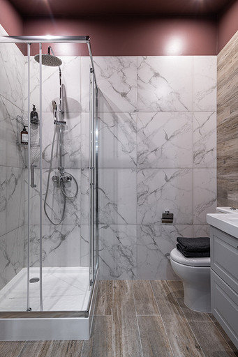 - Стены и пол: плитка Laparet, Kerama Marazzi, ковролин «Леруа Мерлен»