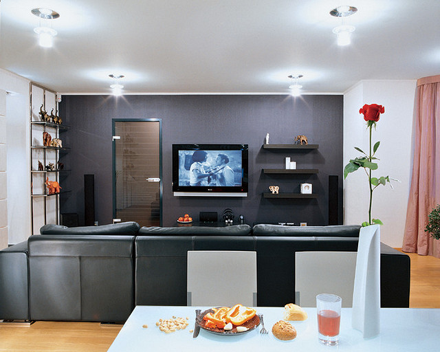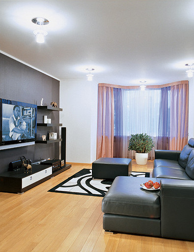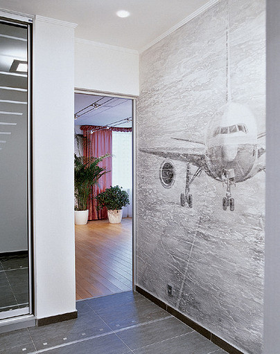 Трехкомнатная квартира площадью 120 м2 в киевской новостройке: взмывающий в небо самолет на фреске в холле символизирует жизненное кредо хозяев. Читать далее...