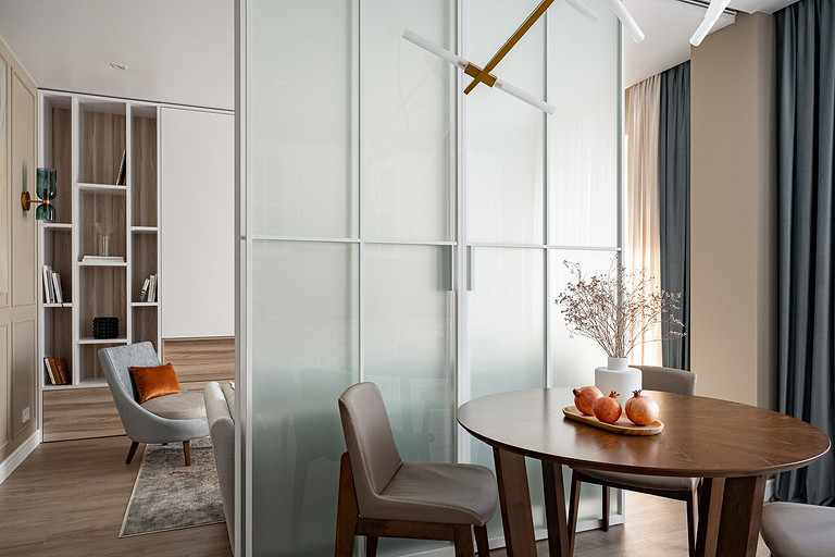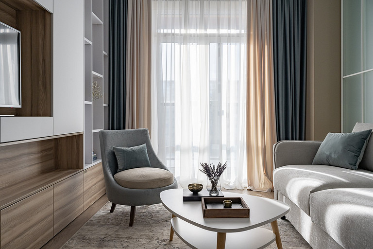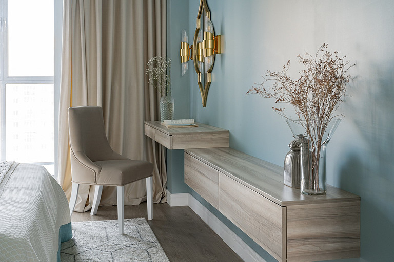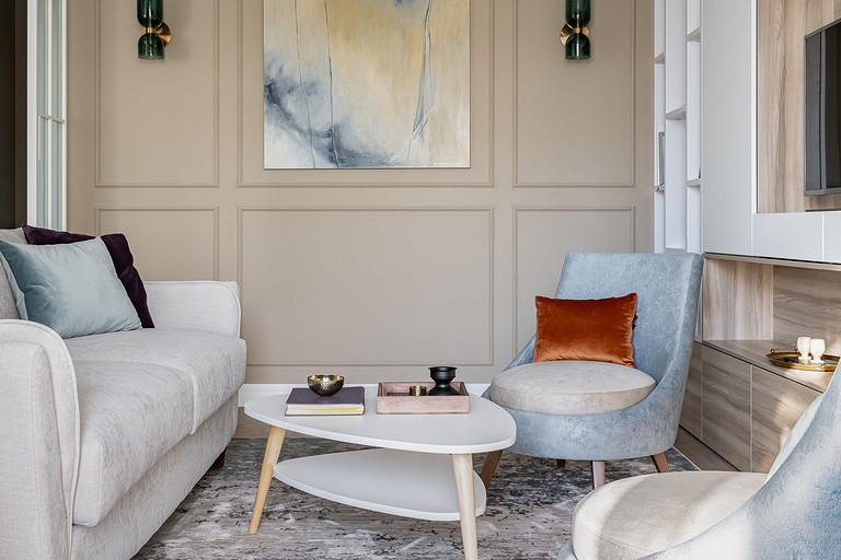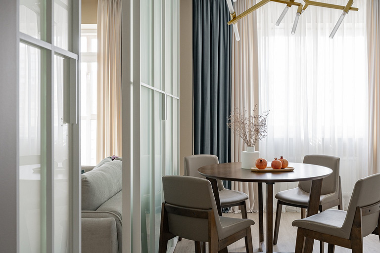 - Мебель: кухня «Мария», консоль в прихожей La Redoute, обеденная группа Stoolgroup, остальные позиции сделаны на заказ у местных производителей