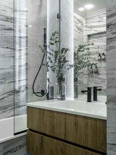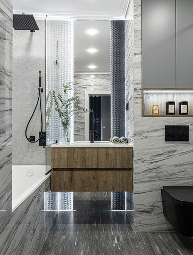- Стены и пол: плитка Vallelunga, мозаика Jasba, керамогранит Italon