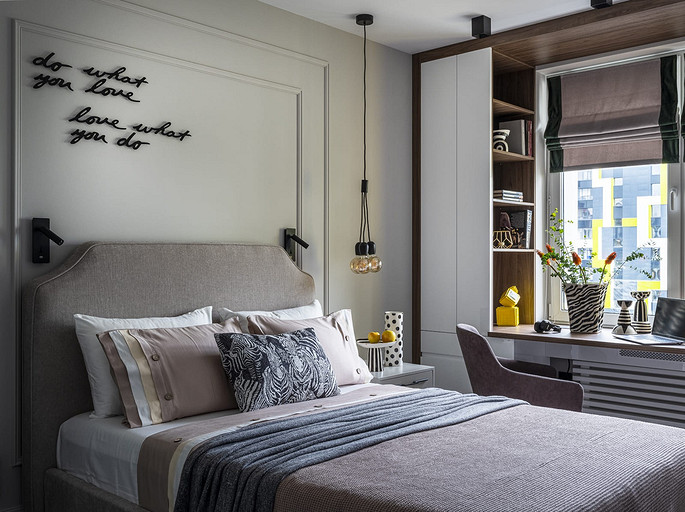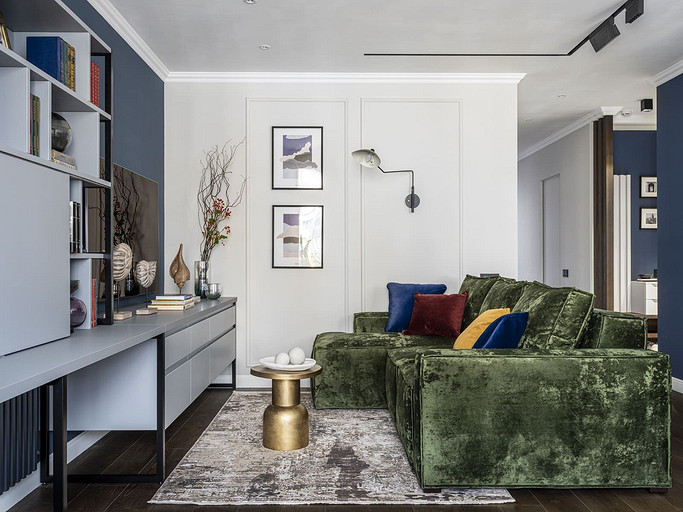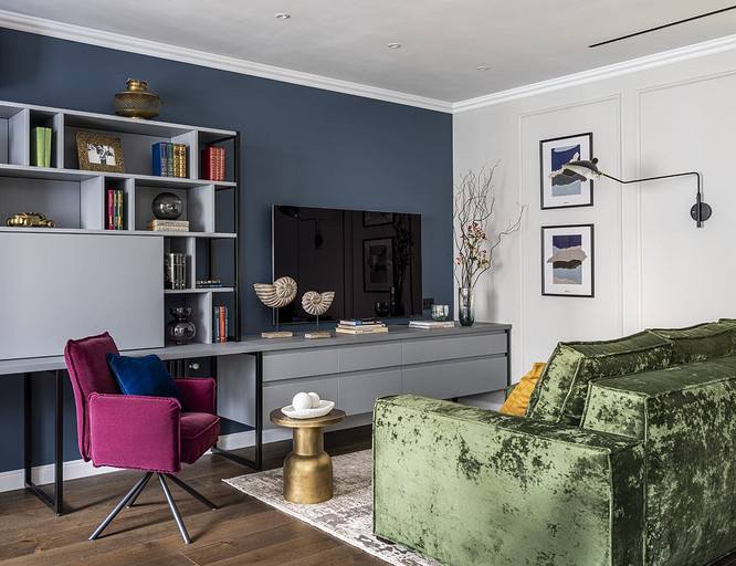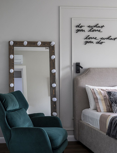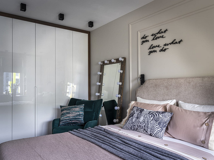 - Мебель: корпусная мебель сделана на заказ (компания Interierno), комод в спальне Ambicioni, мягкая мебель «Мелодия сна», SKDesign, кресло с подушкой Sits Alex