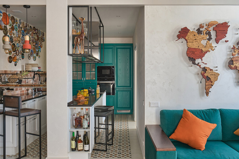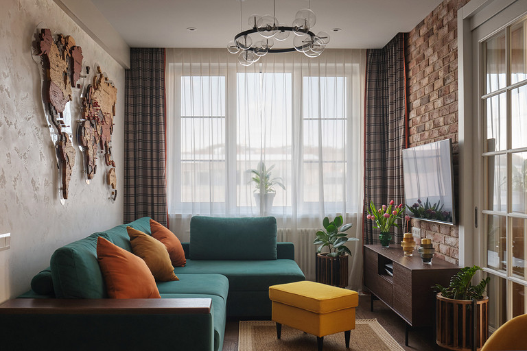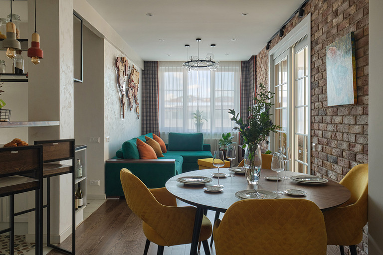 Яркий аутентичный интерьер, создающий иллюзию загородного дома.