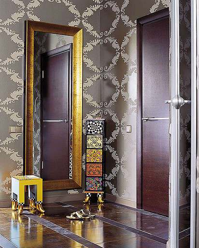 - Стены: стены монолитные железобетонные, обои Ulf Moritz, покраска декоративная