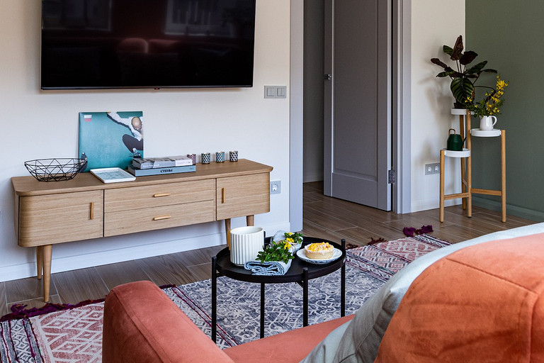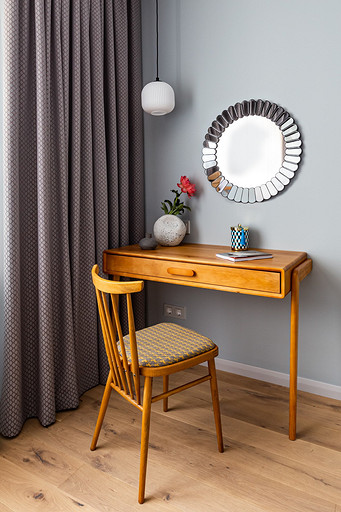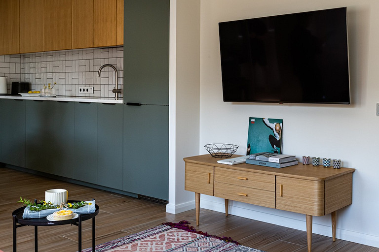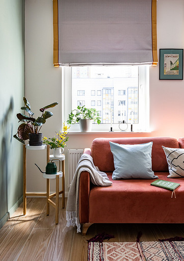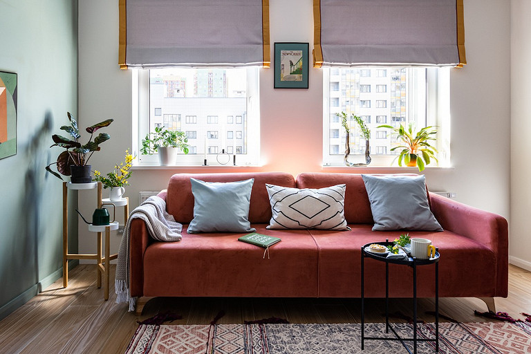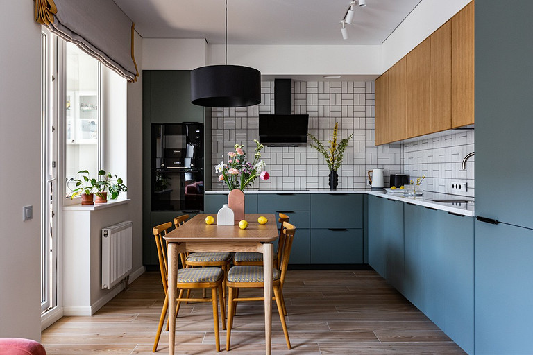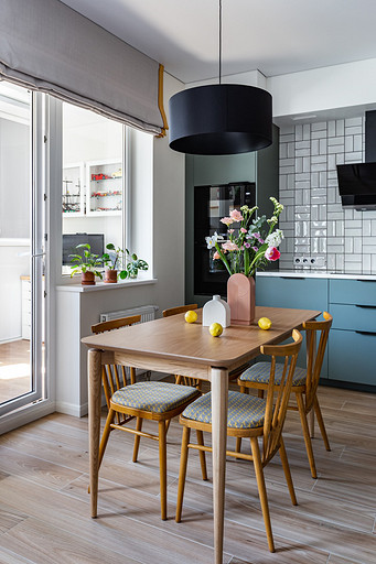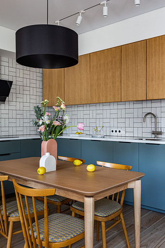 - Мебель: кухня ИКЕА, верхние фасады Rangifer, диван divan.ru, столик «Максидом», тумба и стулья — советский винтаж, стол SK Design