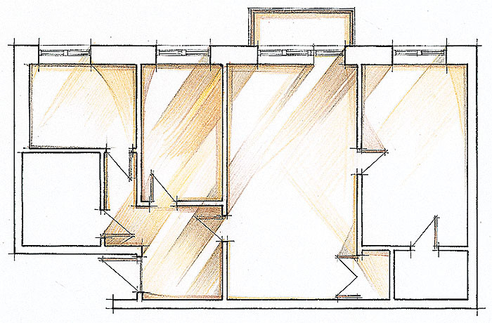 Реконструкция "трешки" площадью 53 м2 в старой хрущевке: вместо крохотных комнат и узких коридоров образовалась просторная студия с тремя окнами. Читать далее...