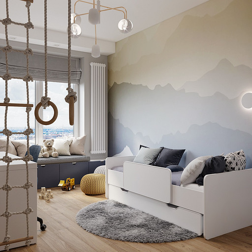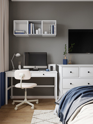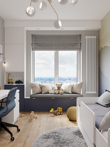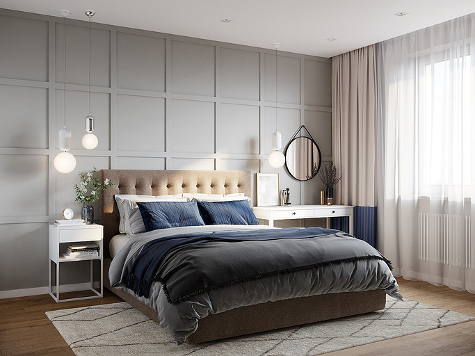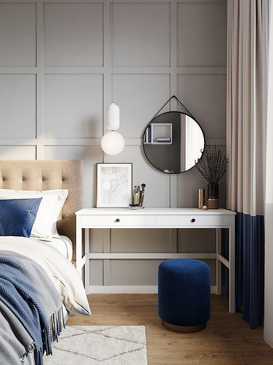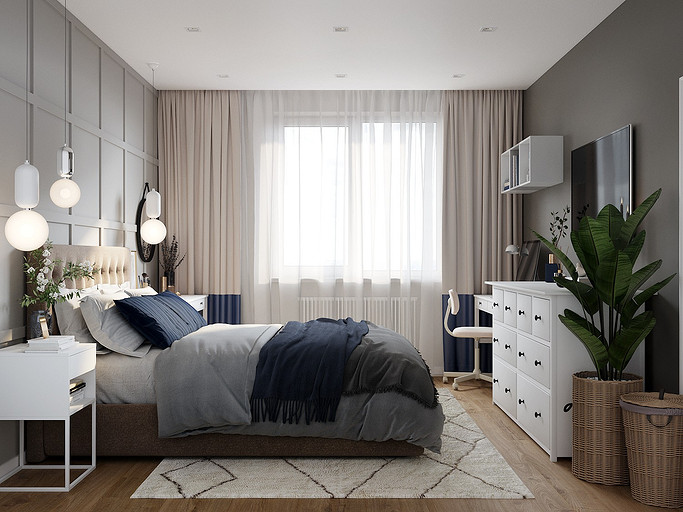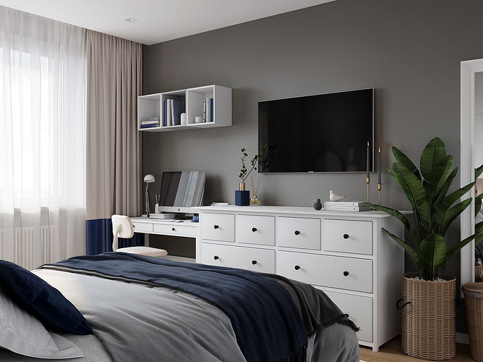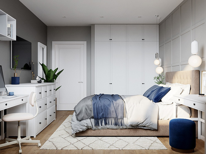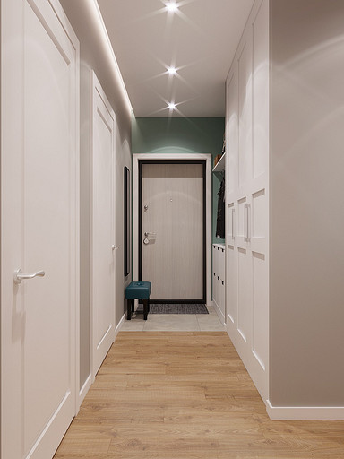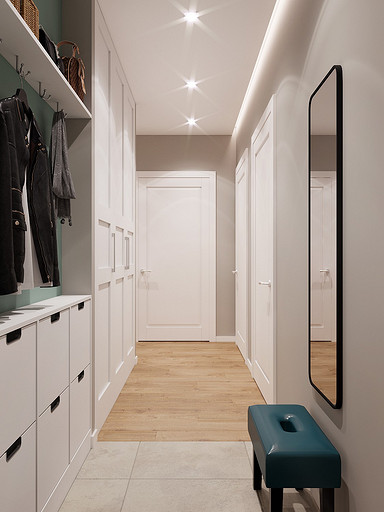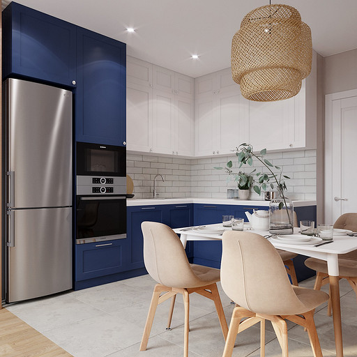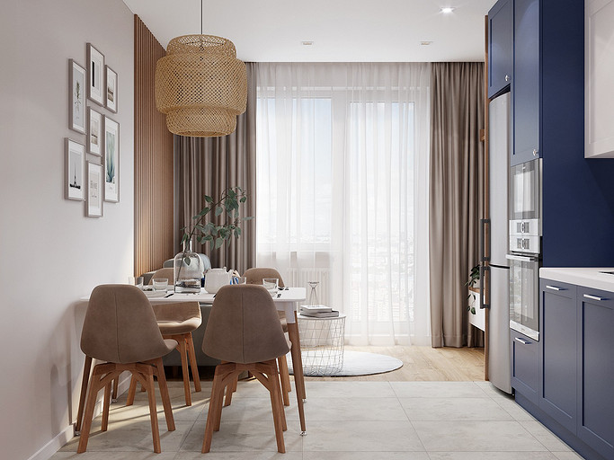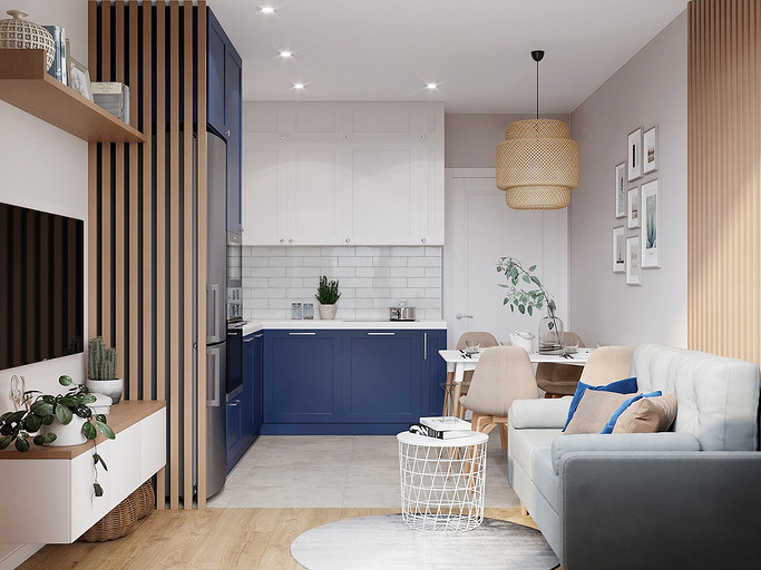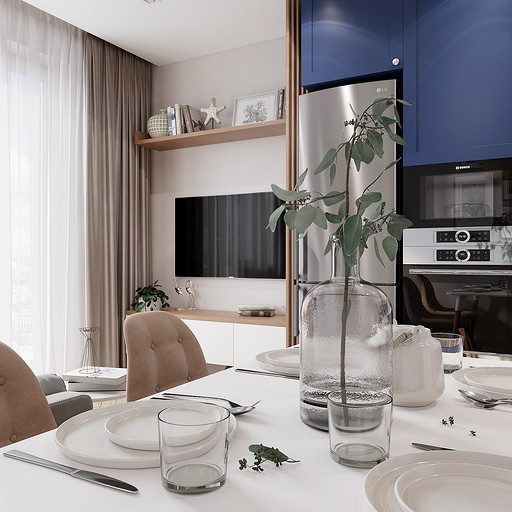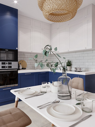 Двухкомнатная квартира в современном стиле и светлых тонах, лейтмотивом выступает синий цвет, который забрался везде по чуть-чуть.