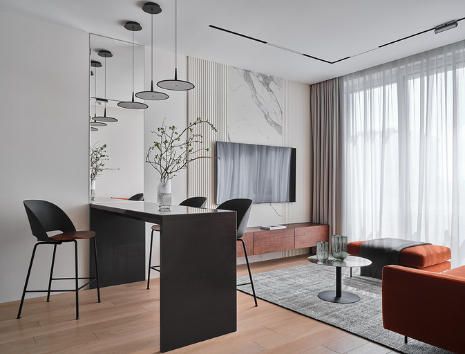 - Освещение: cветильники надо столом Vibia, встроенный свет Arlight