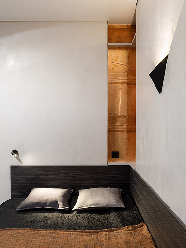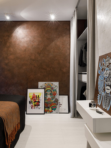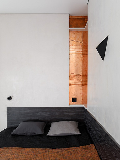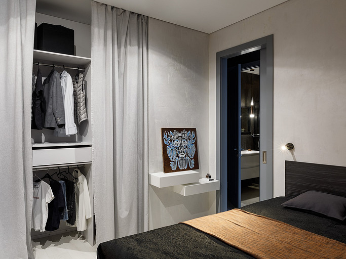 - Мебель: кровать и гардеробная сделаны на заказ в частой столярной мастерской Copperi, консоли La Redoute