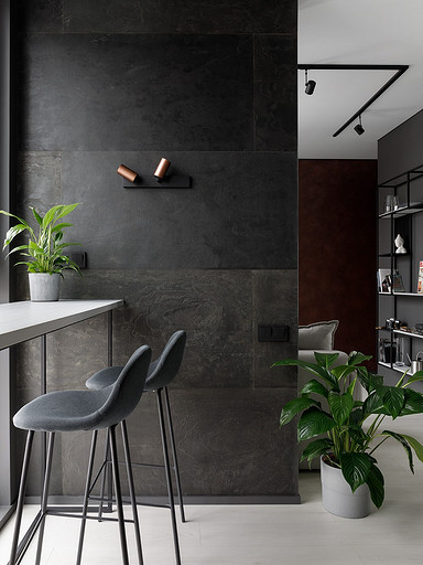 - Стены: краска Tikkurila, каменный шпон Flat Stone