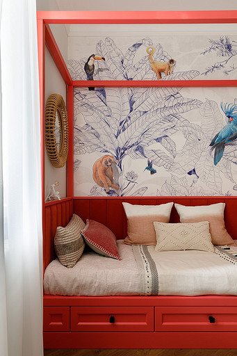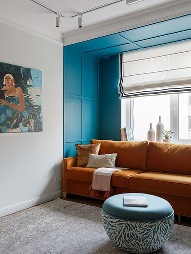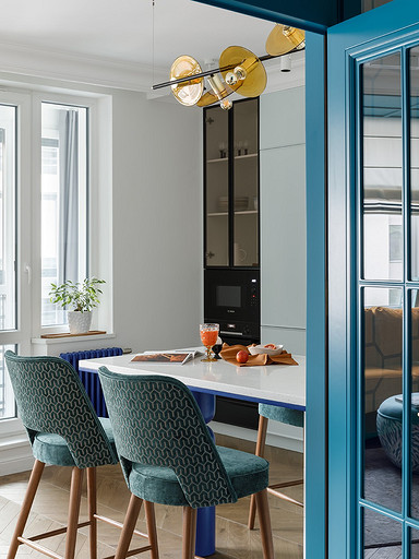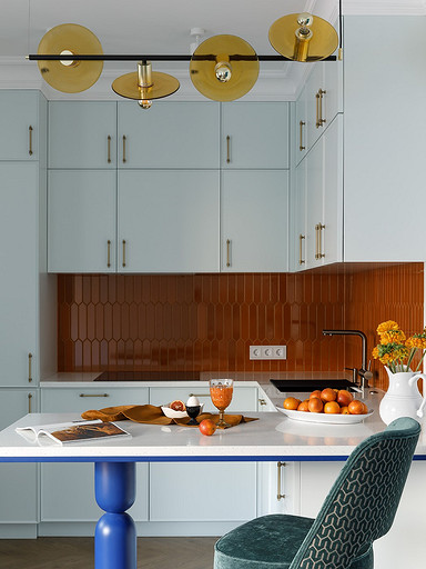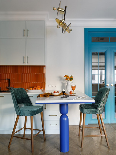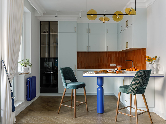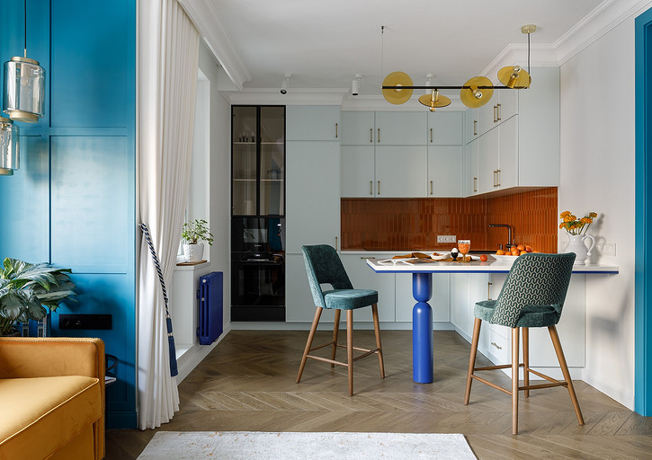 - Мебель: пуф, диван и стулья изготовлены на заказ (СЗРК), столик у дивана Daheli La Forma, кухня сделана на заказ (Kombinat Design)