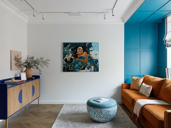 - Декор: Zara Home, «Предметы», H&M Home, картина — «SMS», холст, масло, автор — Елена Шумахер, Abramova Gallery