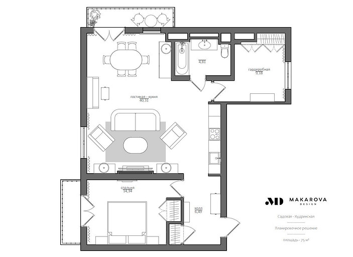 | Гостиная-кухня | 15,6 м2 | 40,3 м2 |