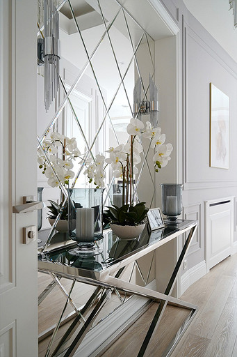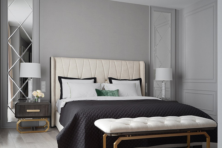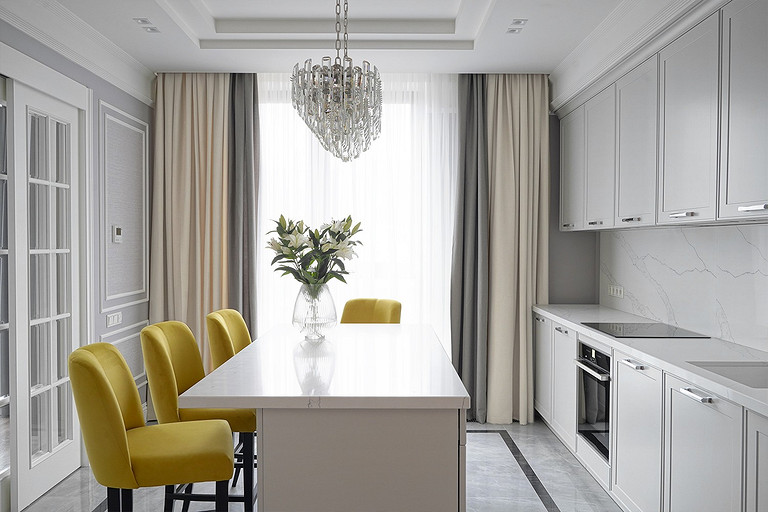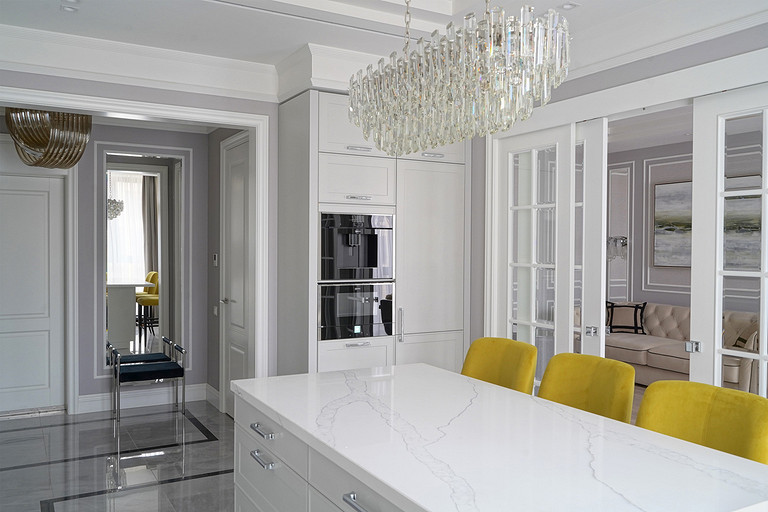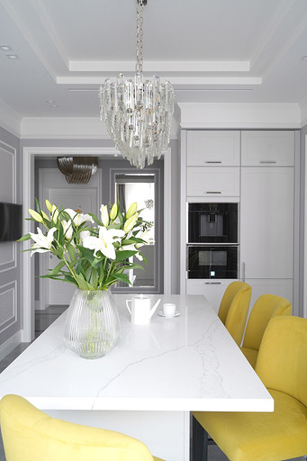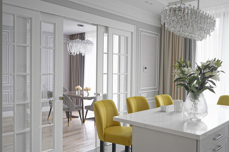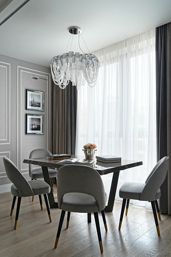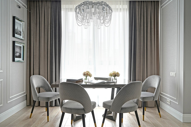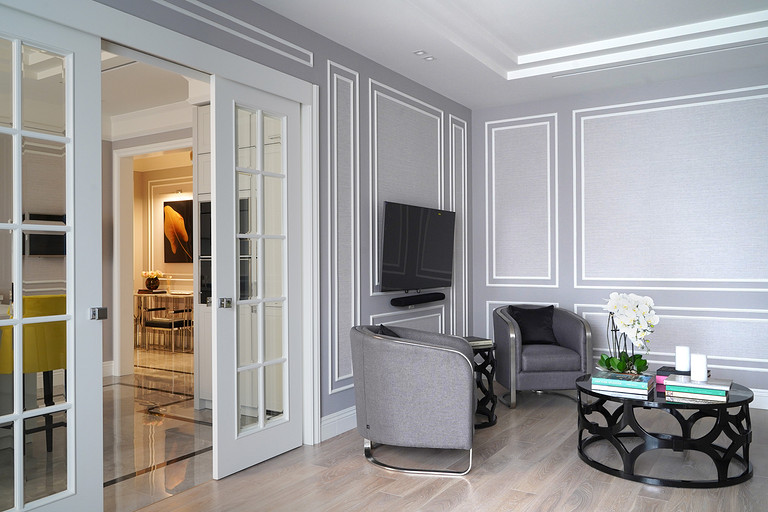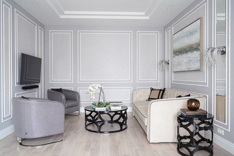 Трехкомнатная квартира площадью 100 кв. м, расположенная в респектабельном районе Москвы, приобреталась заказчиками для последующей сдачи в аренду. Задача была поставлена спроектировать интерьер, который подошел бы для молодой семьи или одного человека с хорошим вкусом и высоким достатком. Следовало организовать гостиную, кухню-столовую, спальню и весь необходимый для комфортного проживания функционал: два санузла (один с ванной, другой с душевой кабиной), хозяйственный блок со стиральной и сушильной машиной, гладильной доской и местом для хранения бытовой химии, а также встроенные шкафы для обуви и верхней одежды при входе и отдельную гардеробную при спальне.