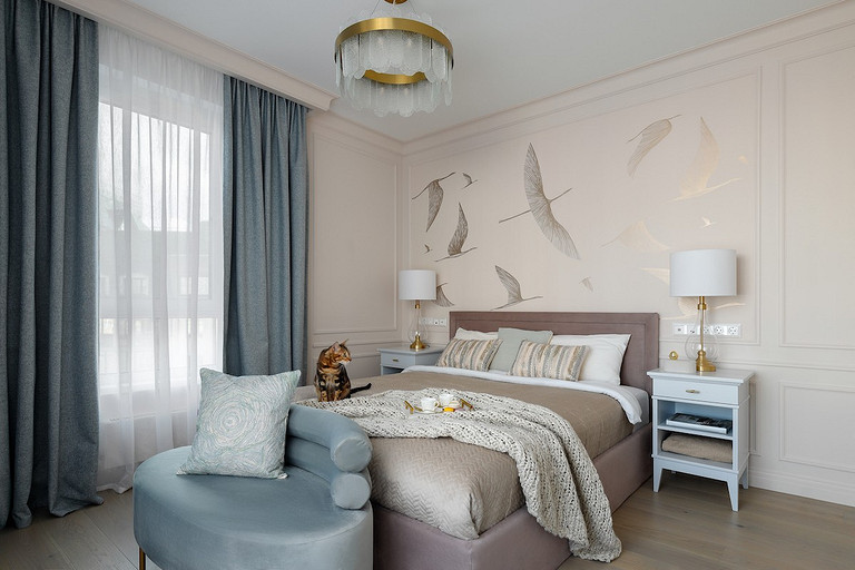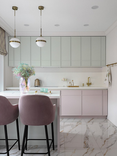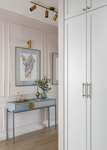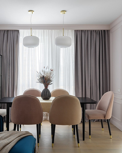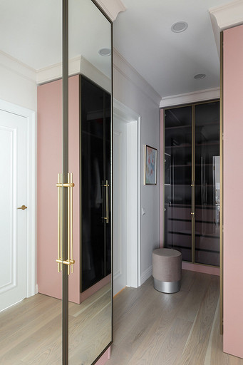 Дизайнер Евгения Костенко выделила кабинет как отдельную комнату, а также гардеробную. Планировка получилась удобной, а интерьер — стильным и уютным. Читать далее...
