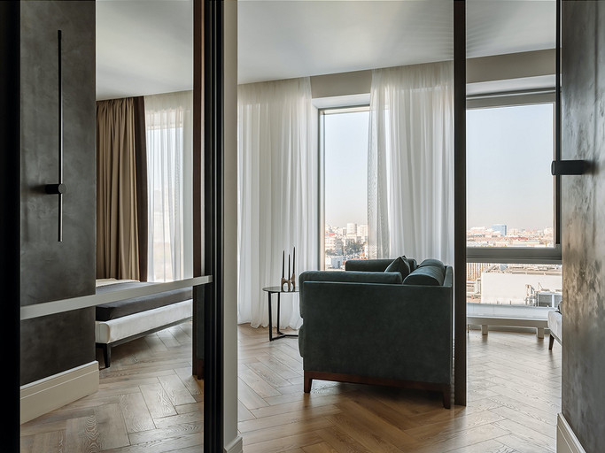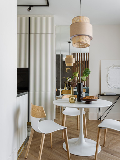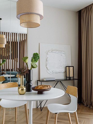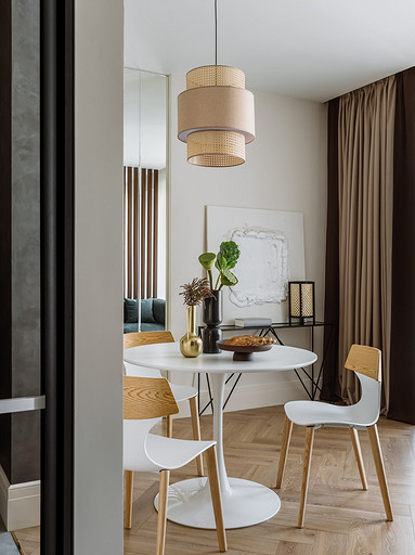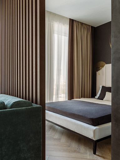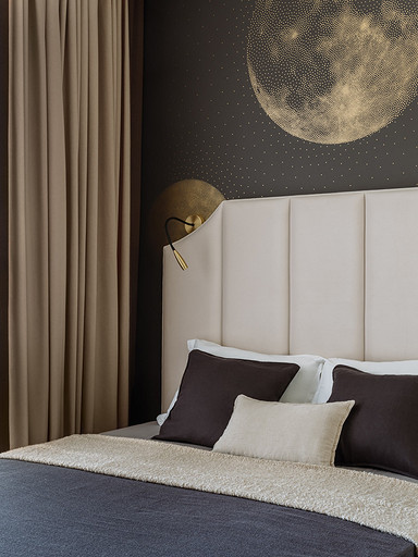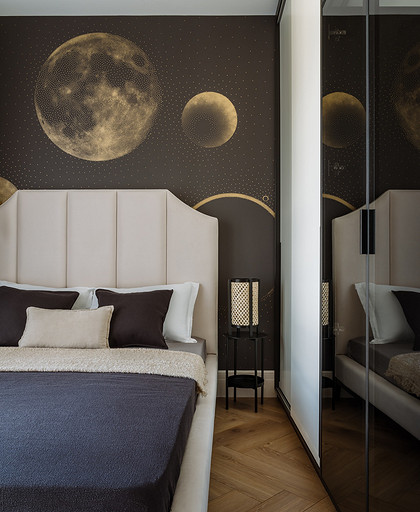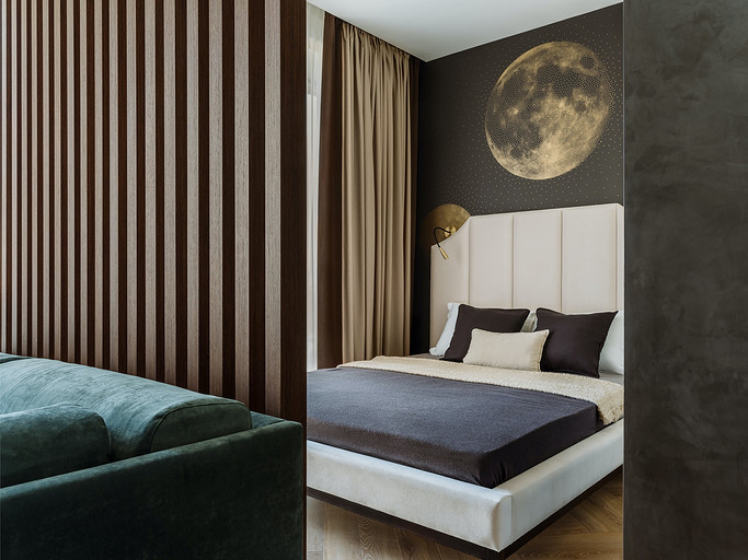 - Мебель: ИКЕА (каркасы), фасады индивидуального изготовления, стол, стулья и консоль Inmyroom, диван Idea, кровать Dantone Home