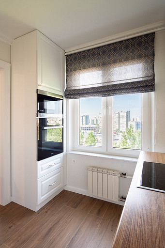 - Пол: керамогранит на кухне и лоджии Kerama Marazzi, плитка в прихожей Azteca, ламинат Quick Step