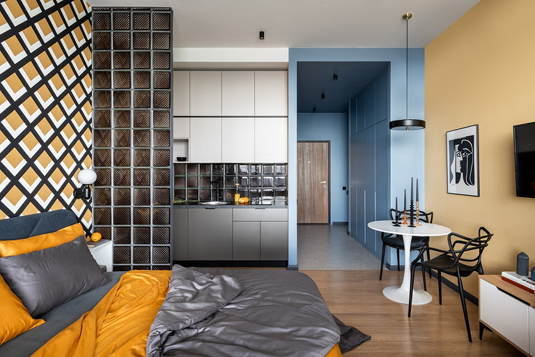 Полноценная спальная зона, рабочее пространство, кухня со столовой, комфортная ванная, системы хранения — можно только удивиться, как дизайнерам удалось уместить все на такой маленькой площади. Читать далее...