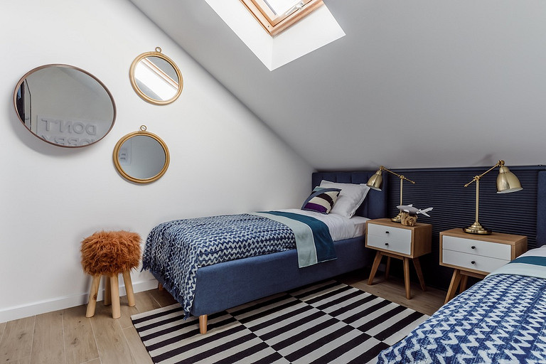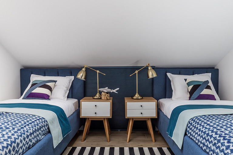 - Мебель: ИКЕА, тумбочки спальни и пуфы в гостиной La Redoute, кровати «Сонум»