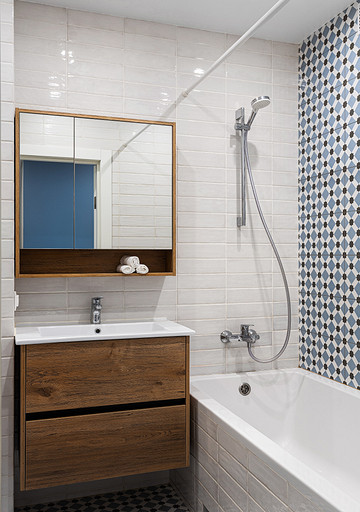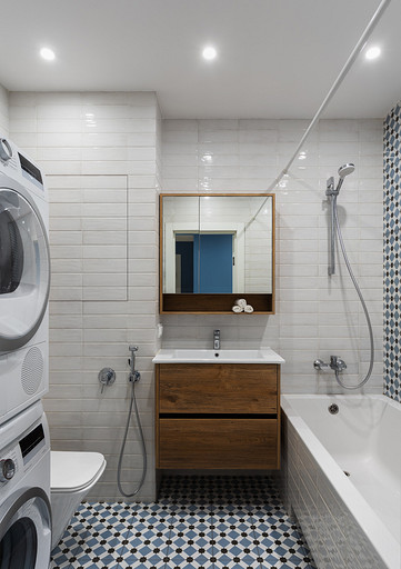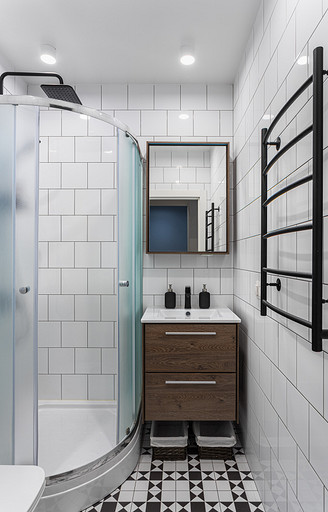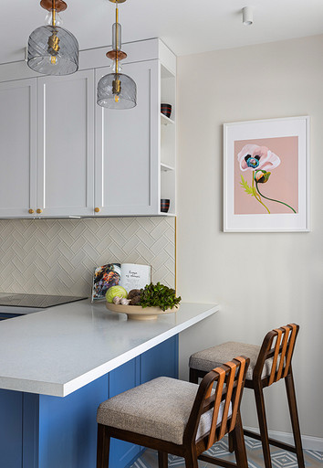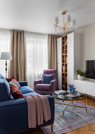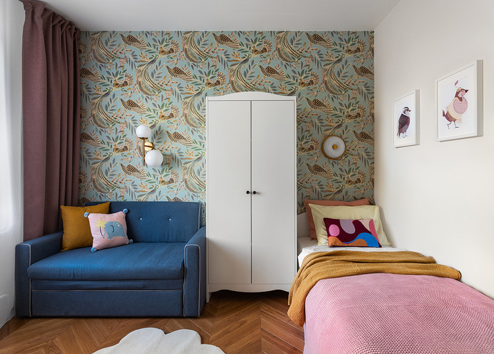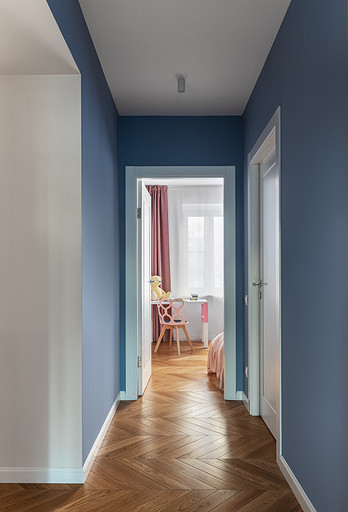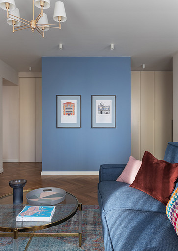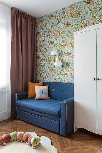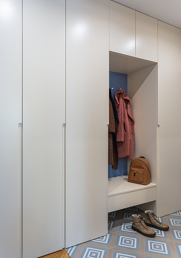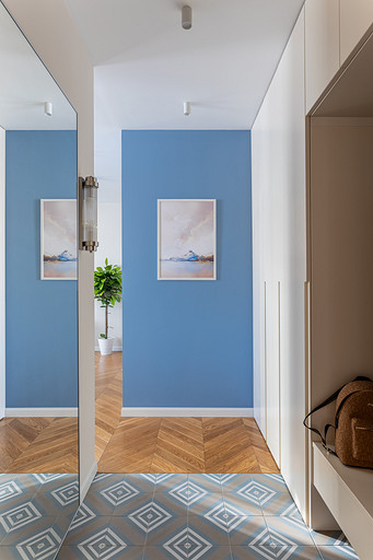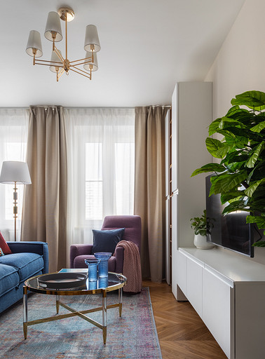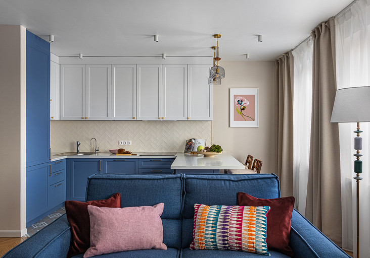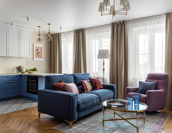 Объект: Кирпичный дом 1973 года постройки. В квартире несколько десятилетий не было ремонта. Потолки — 265 см и три несущие стены сильно ограничивали возможности новой планировки. Заказчики поставили задачу организовать три спальни, два санузла, постирочную, просторную кухню-гостиную, много мест хранения. Квартира предназначена для постоянного проживания семьи, периодически остается няня, для нее предусмотрели раскладной диван в детской. В ходе разработки планировочных решений я проанализировала архивные планы БТИ соседей снизу и сверху. Оказалось, что планировки в доме до четвертого этажа отличаются от планировок 5-го и более высоких этажей. Так, до ремонта кухня заказчика находилась над жилой комнатой соседей снизу, хотя ни в квартире заказчика, ни этажом ниже перепланировок с момента постройки дома не было. В результате мы легально перенесли кухню в жилую комнату, но пришлось потрудиться, чтобы найти в несущей стене замурованный стояк канализации и врезать в него слив кухонной мойки. На месте прежней кухни теперь — детская дочери. Отправной точкой проекта стала любимая заказчицей метлахская плитка. Именно она натолкнула на идею спокойной неоклассики с налетом винтажа: спокойные геометрические узоры, паркет французской елкой, цветовая гамма как у художников Раннего Возрождения — уютное, живописное пространство.