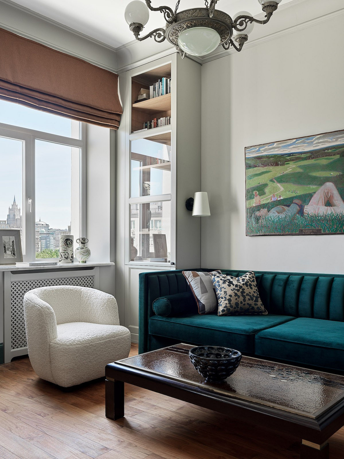 Перед дизайнером стояла задача разместить в квартире семью из четырех человек с комфортом. И создать интерьер, который бы не спорил с историческим фасадом здания в центре Москвы. Читать далее...