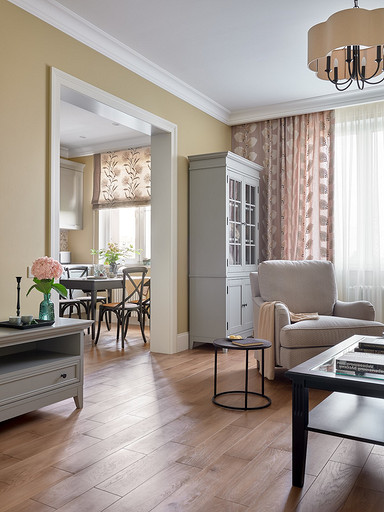 В этой квартире создано настроение загородного дома и присутствуют нотки английской классики, но не тяжелой — с клеткой и темными тонами, а светлой и легкой. Читать далее...
