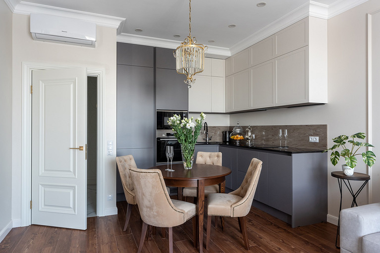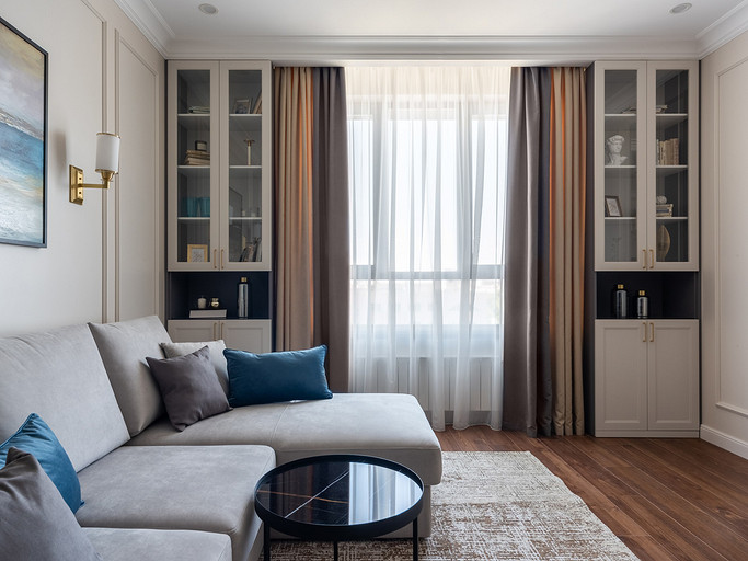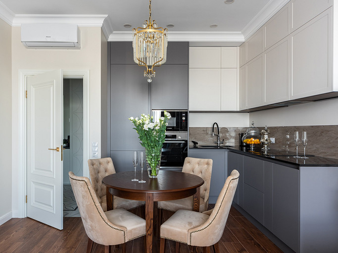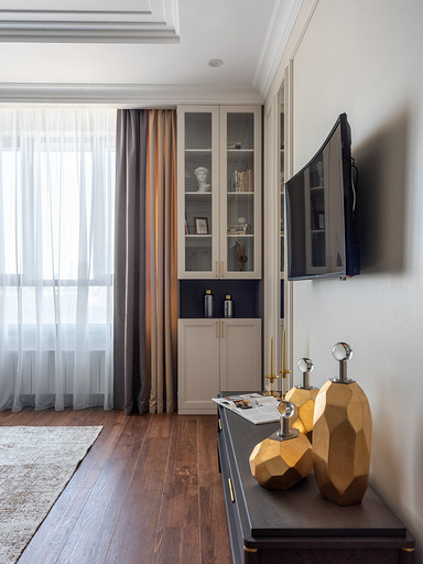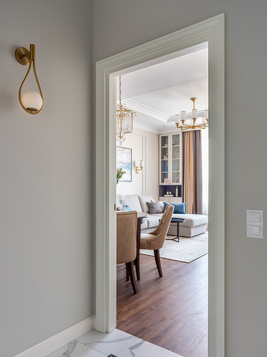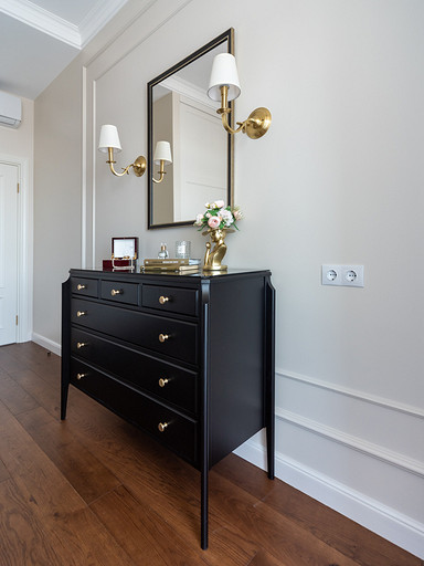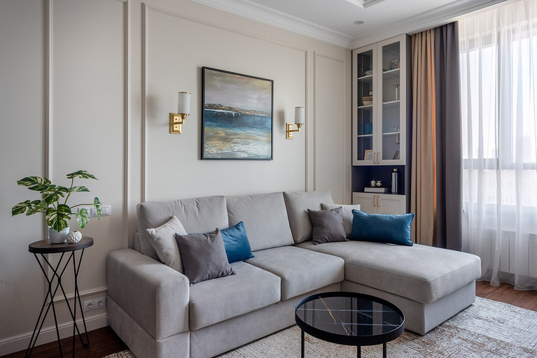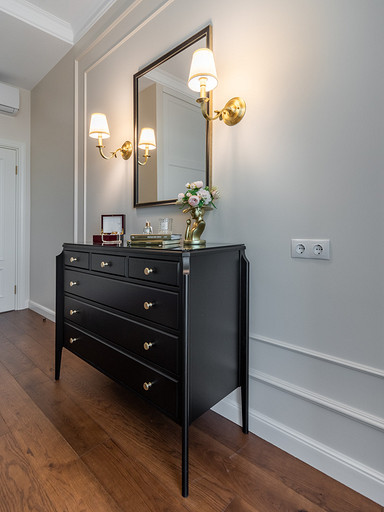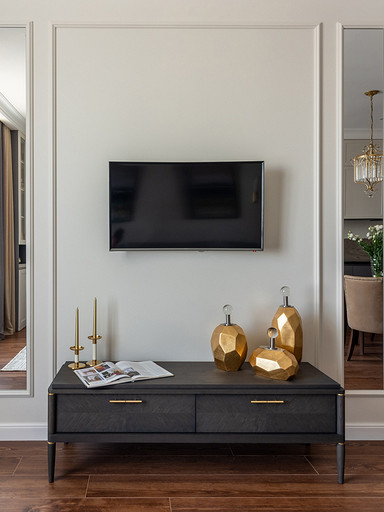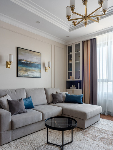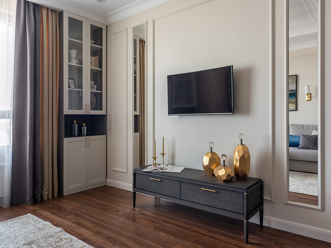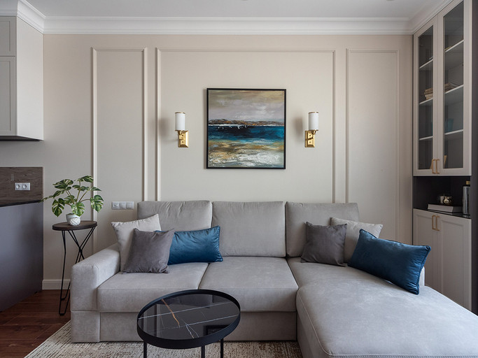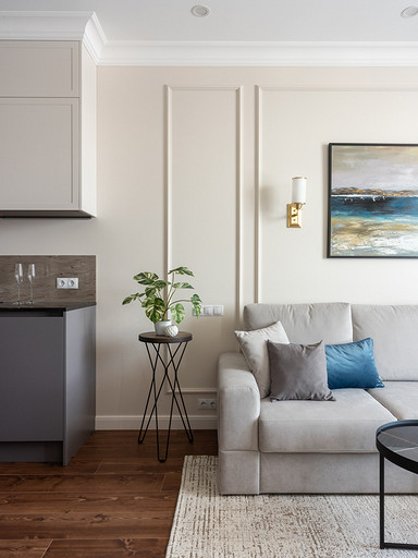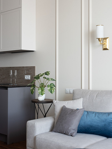 На 55 квадратных метрах выделены кухня-гостиная, отдельная спальня и гардеробная. Пространство смотрится основательно, и небольшая площадь совсем не мешает такому ощущению. Читать далее...