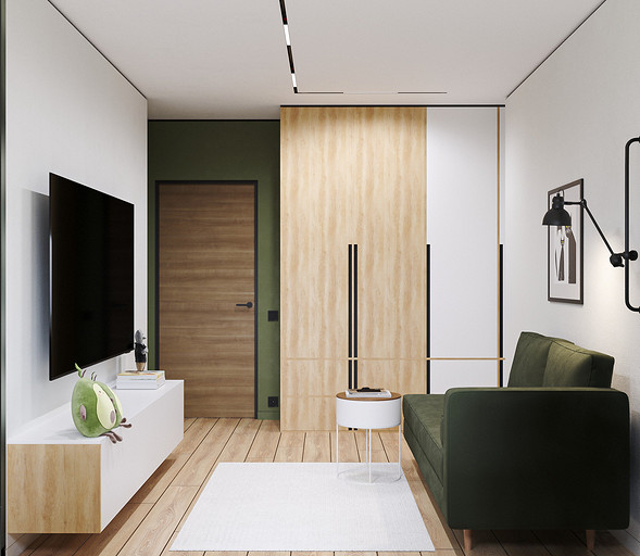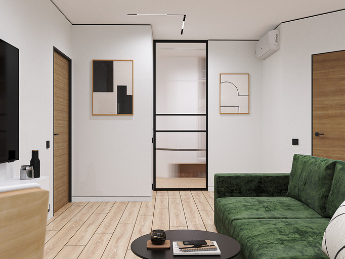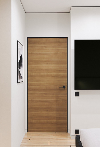 Вид на выход в прихожую и дверь в спальню.