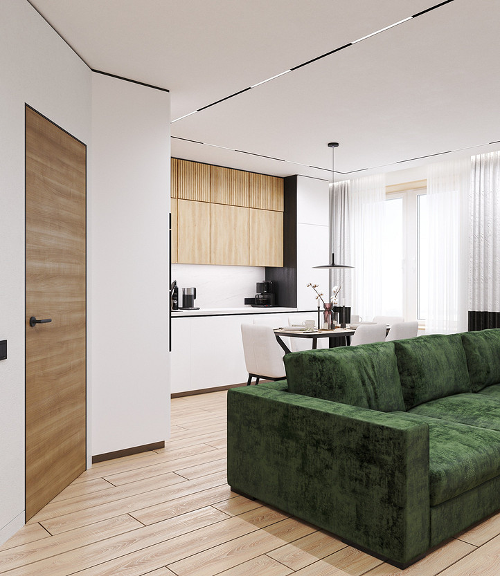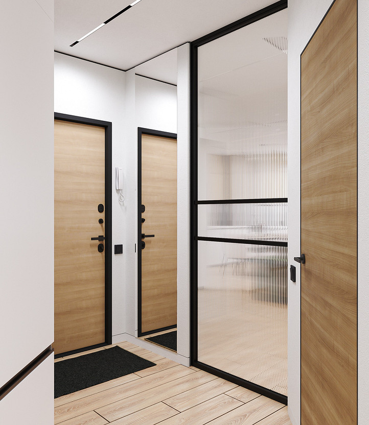 Вид на вход в квартиру и вход в кухню-гостиную.
