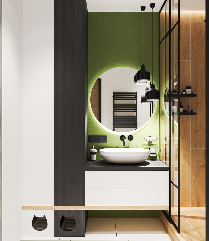 Предусмотрено место под скрытый кошачий туалет. В семье 2 котика.