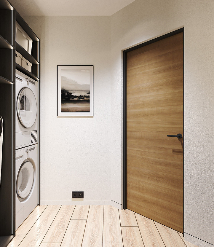 Вид на вход в кухню-гостиную и гардеробную.