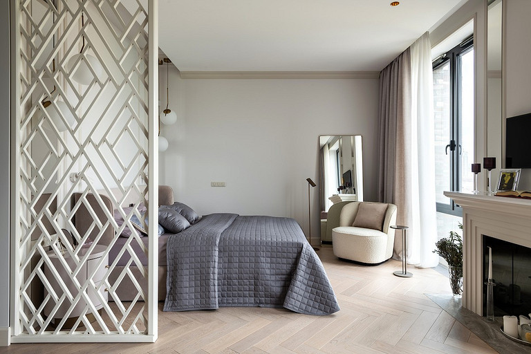 - Мебель: кровать и кресло Dreamma, тумбочки Koza Home, столик Cattelan Italia