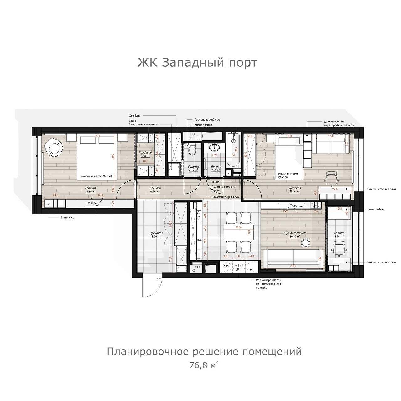 Общая площадь квартиры 77кв.м. Квартира проектировалась для семьи из трех человек.