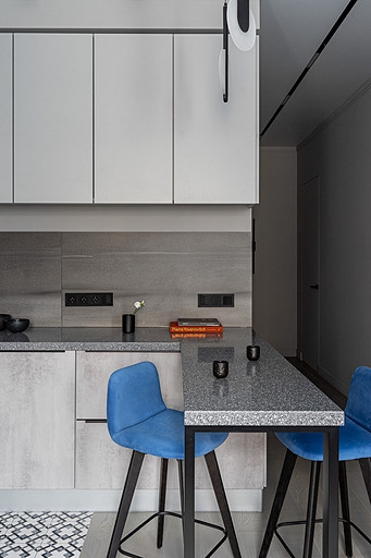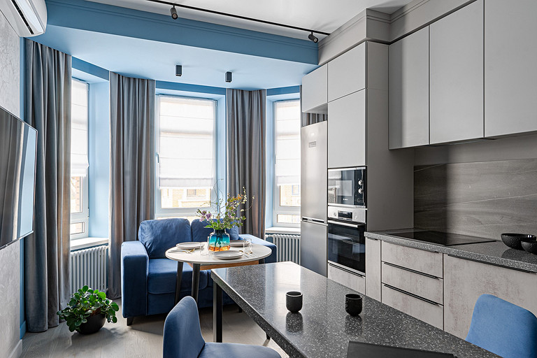 - Мебель: диваны, стулья и банкетка SK Design, кухонный гарнитур Kuchenberg, корпусная мебель выполнена частной мебельной компанией, стул в спальне и тумба в комнате сына Cartell