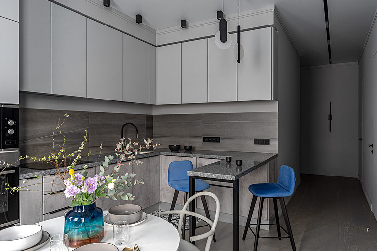 Пространство построено на принципах минимализма. Здесь выдержанные цвета, нет большого количества декора, создается эффект чистоты и выверенности. Читать далее...