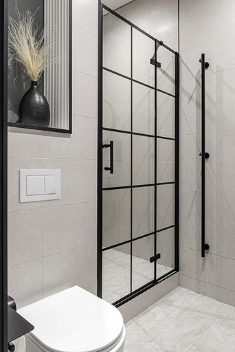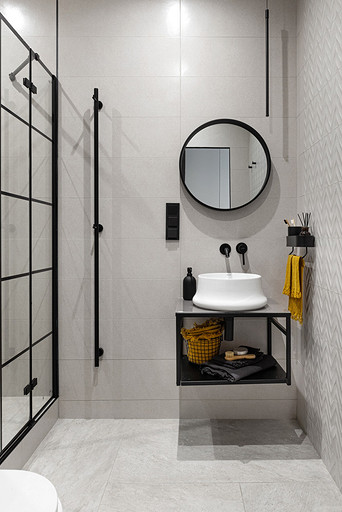 - Сантехника: унитаз OWL, инсталляция Tece, раковина Grossman, смесители Jacob Delafon (для раковины), Am.Pm (душевая стойка)